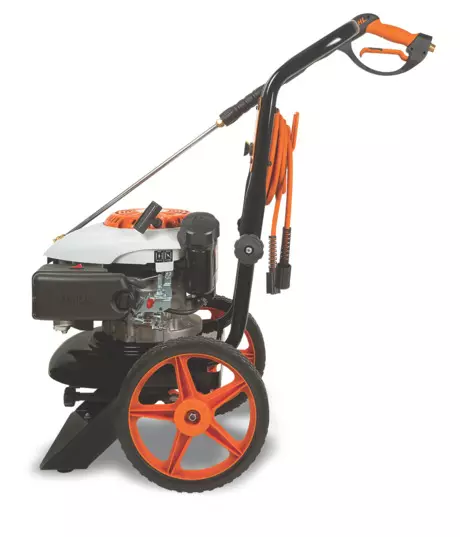 La STIHL RB 200 lo hace todo sin problemas. Su potente motor ofrece la suficiente potencia como para hacer frente a los difíciles trabajos de limpieza en aceras, entradas de vehículos, cubiertas y más. Cuenta con un sistema de bomba de arranque fácil, por lo que no se producen tirones ni arranques difíciles. También viene de serie con un sistema de inyector de detergente. Y con su manguera flexible sin plegado de 25 ‘, puede limpiar más área sin tener que mover la máquina.